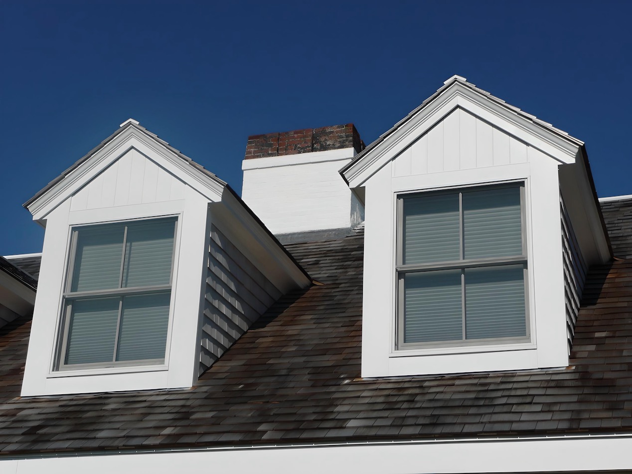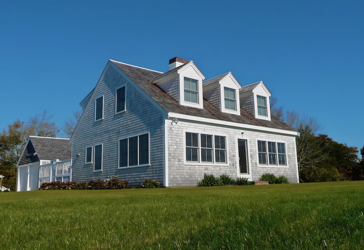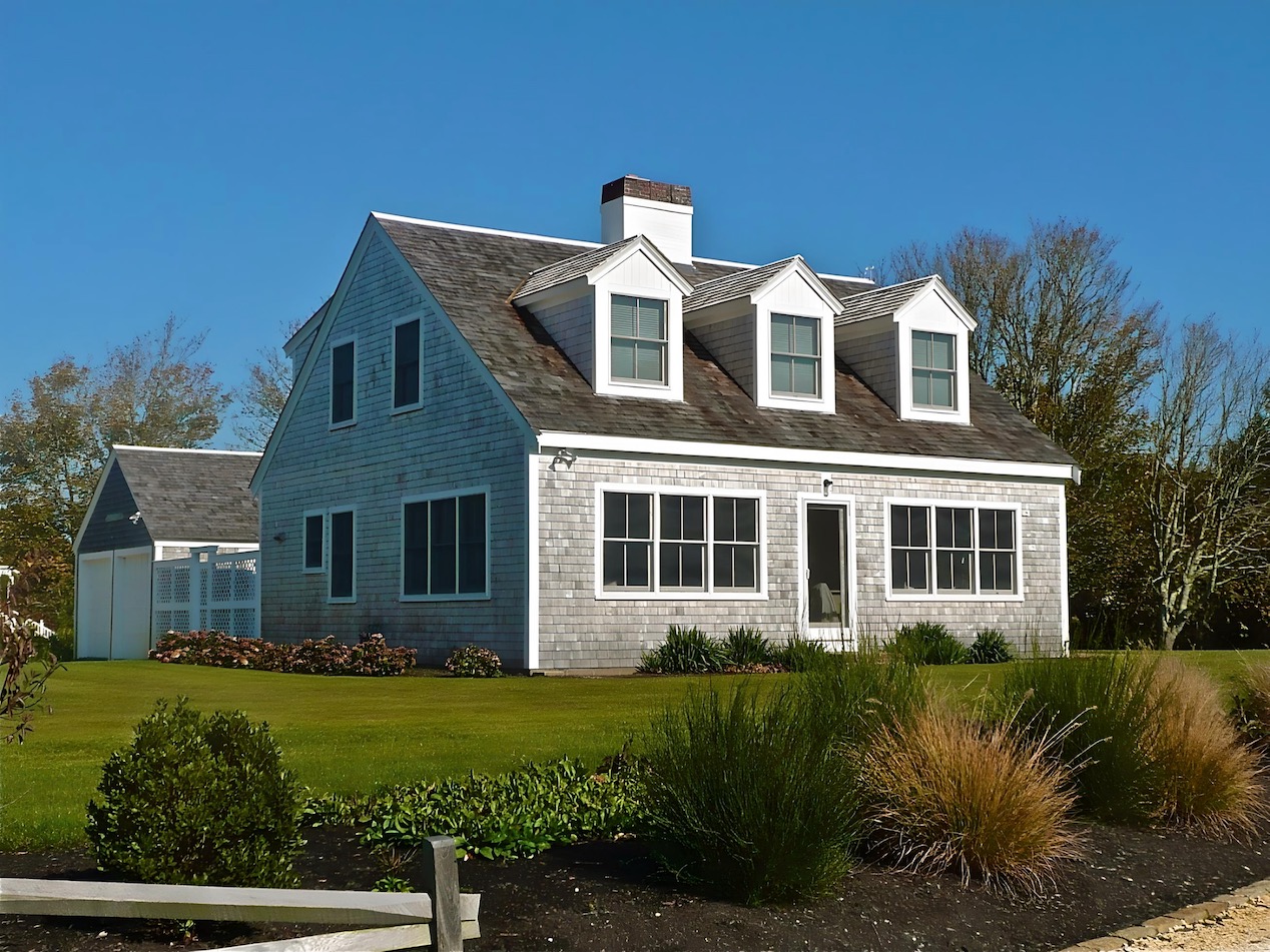 The exterior transformation was completed by replacing the undersized windows at the three doghouse dormers with new windows that fill the front walls and provide a clear view of Stage Harbor from the bedrooms upstairs.